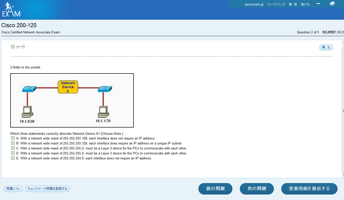 400-101練習問題はPDFぼ形式とソフトウェアの形式で提供します。PDF版はいつでも、携帯電話、コンピュータ、タブレットPCで勉強してもいいです。ソフト版は真実の試験環境と同じです。受験者のために、試験環境を適応することができます。